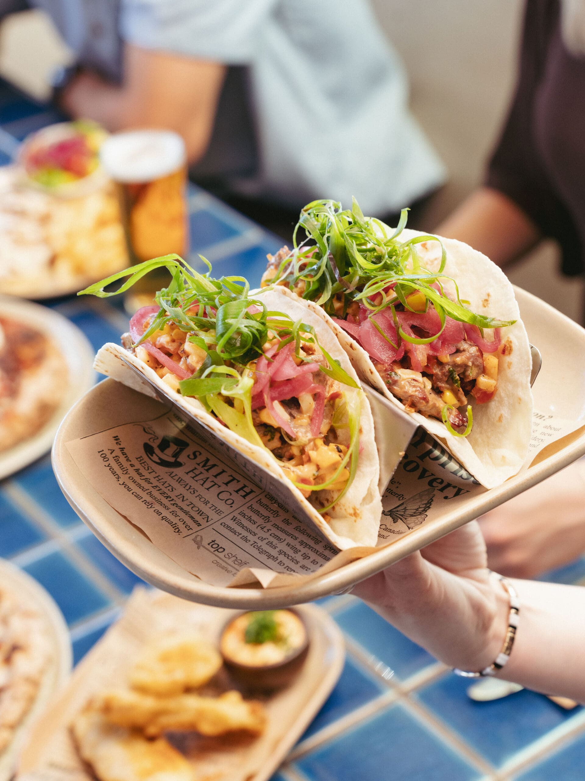 pickled onion, cheese, crispy shallots
