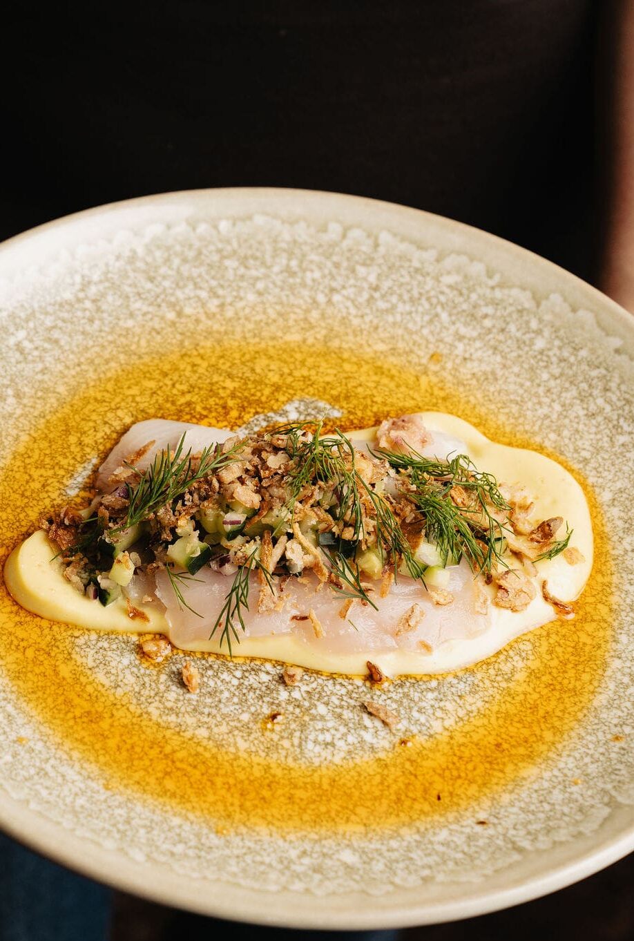 citrus dressing, cucumber salsa, dill, crispy shallots, chilli oil