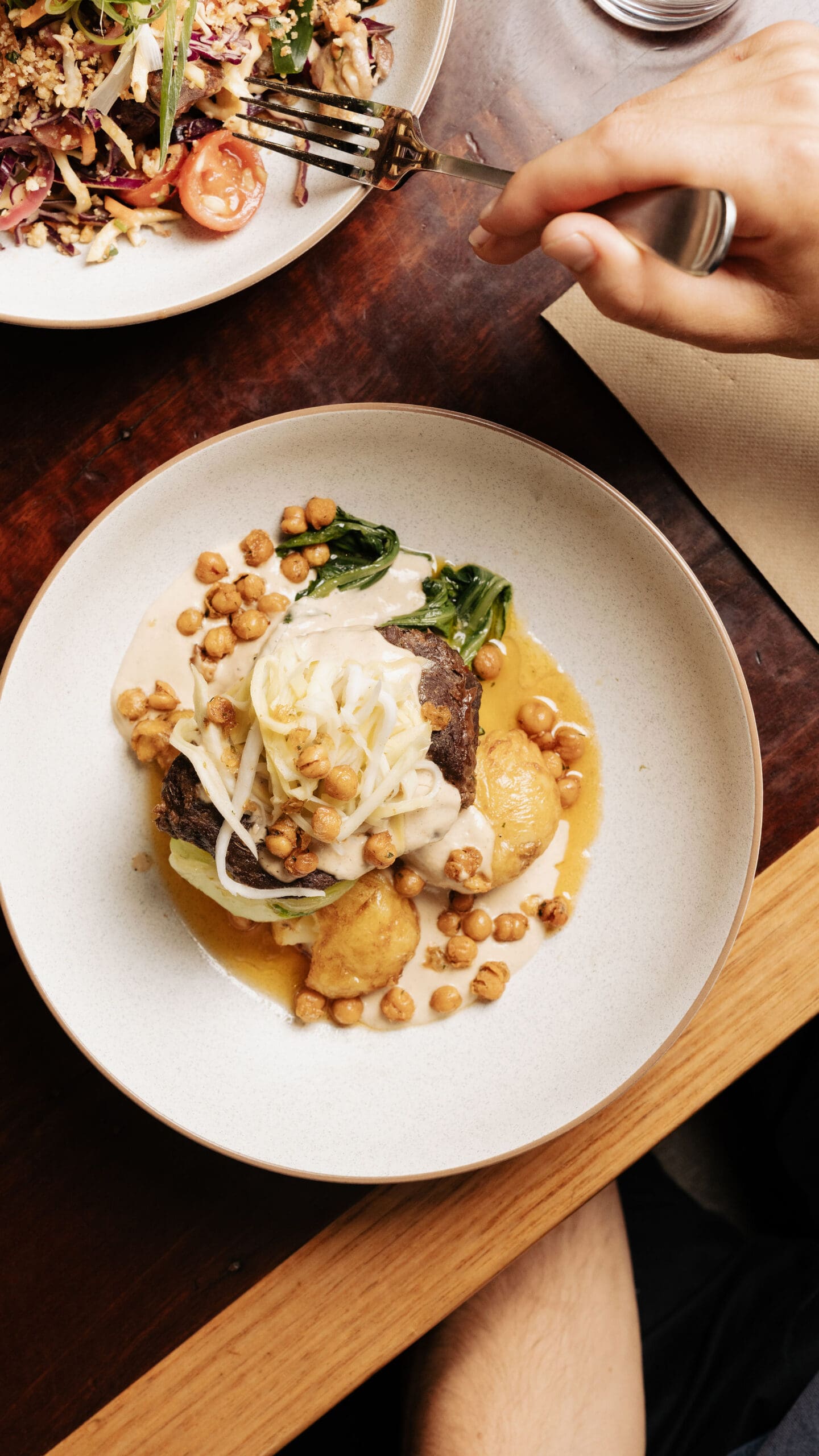 fried cumin potatoes, bok choy, crispy chickpeas