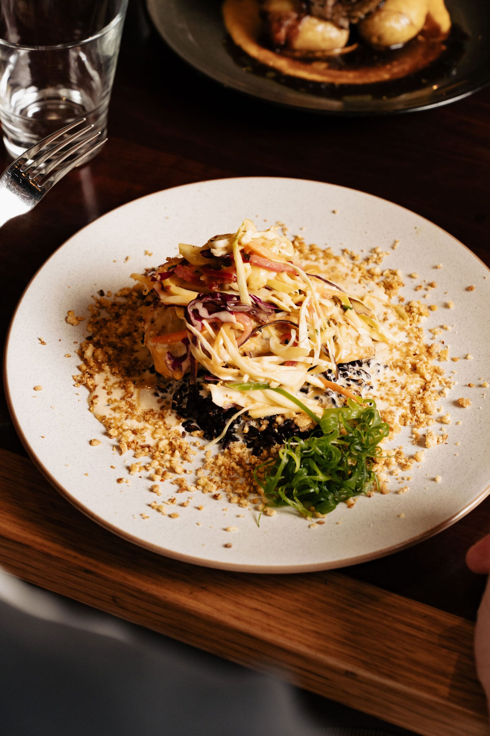 thai red curry sauce, black rice, peanut chilli crunch.